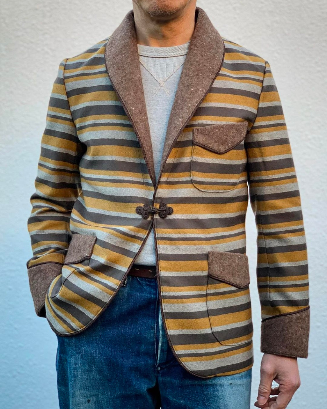 A reproduction of the smoking jacket that was popular in the 1900s and 1920s.