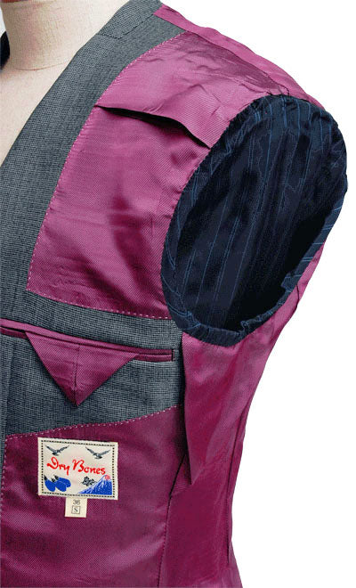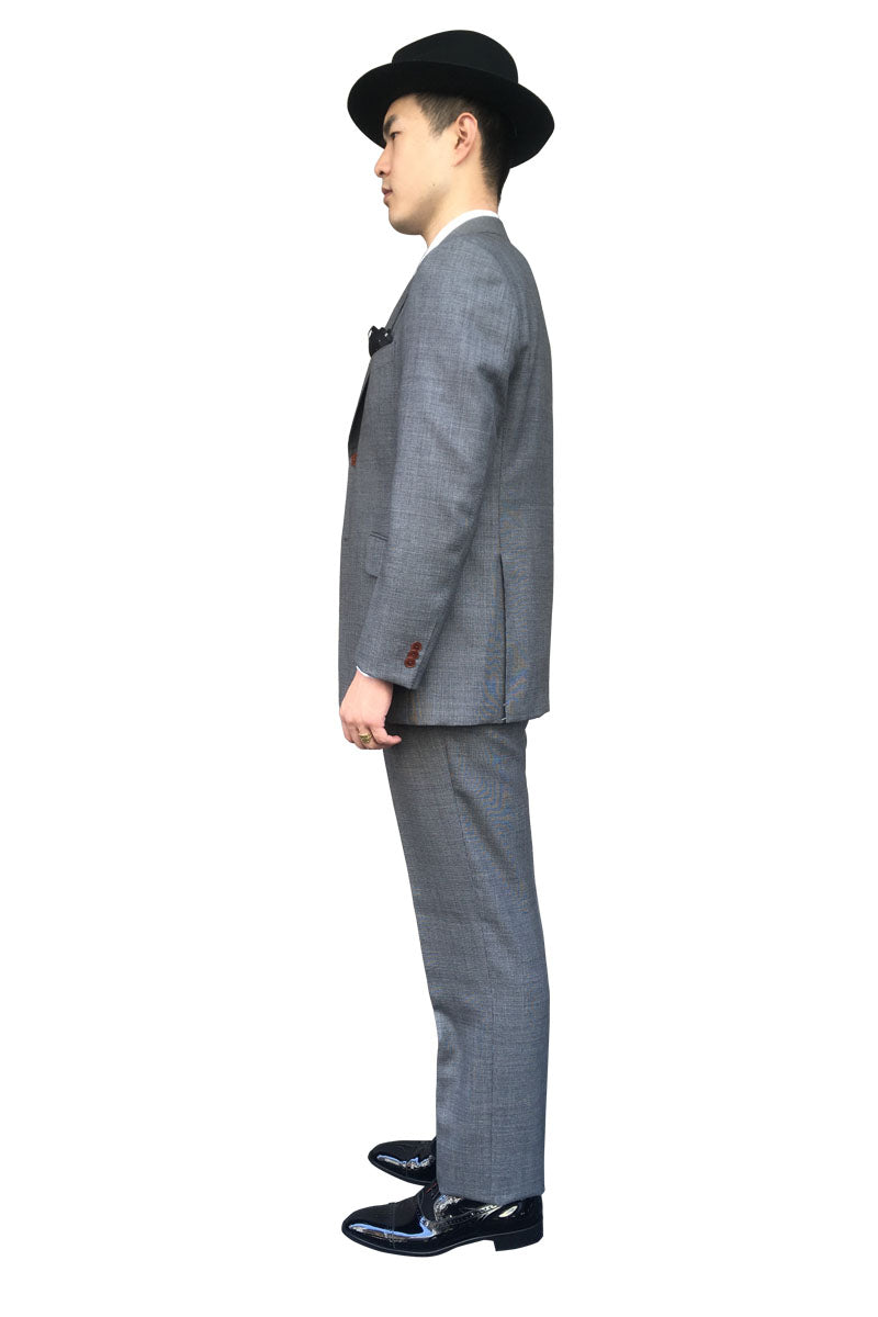 Genuine nut buttons are used. The color of the buttons is dyed red to match the color of the lining. The lining is "Odaiba style" and has a luxurious finish that requires a lot of effort. While the two-button notch lapel gives it a normal look, the lining is made of purple French twill and has a wide Odaiba style, adding a playful touch. It is a production that has a hidden sex appeal that is unique to Dry Bones.