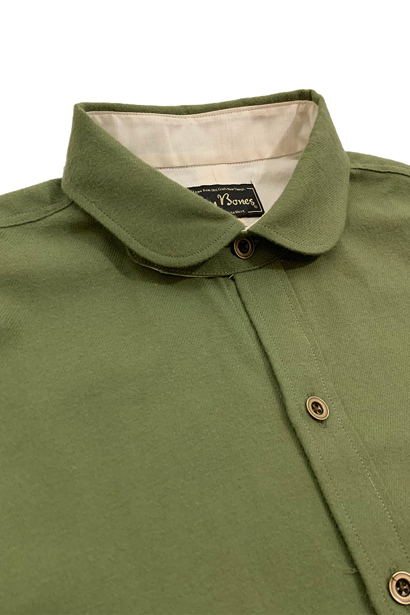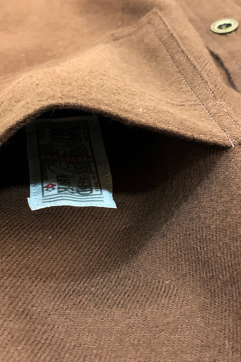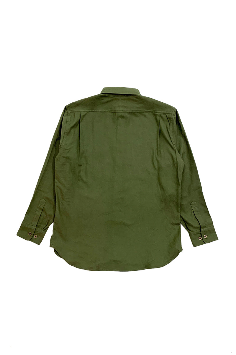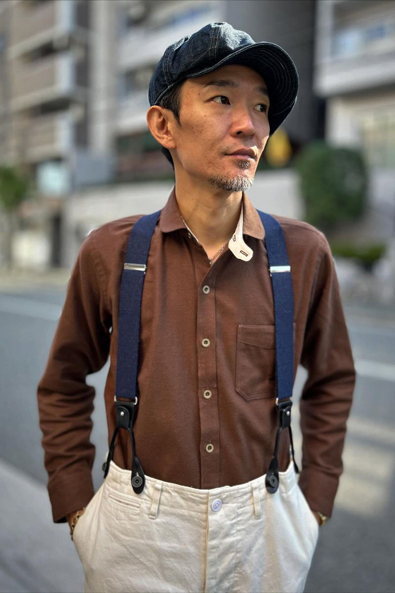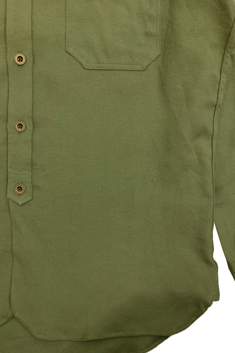 素材はソリッドカラーのコットンフランネル。元々ワークシャツとの相性が良いネル素材、起毛させた温かみが冬の着こなしに大切。