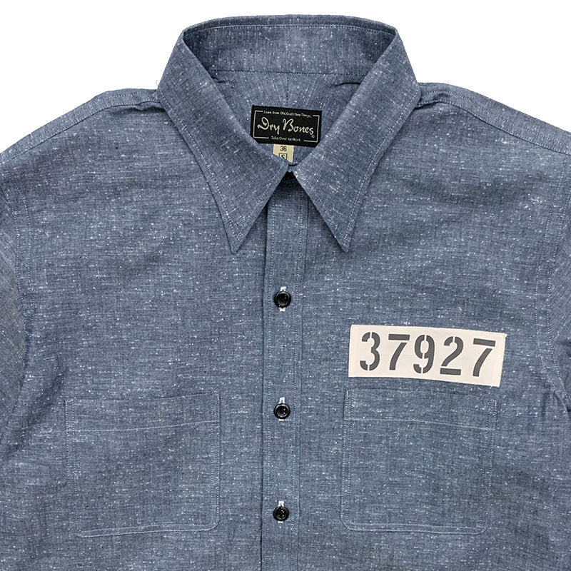 1950年代以前の、アメリカの刑務所内で着られていたであろう囚人服としてのワークシャツを、映画を元に復活させてみました。