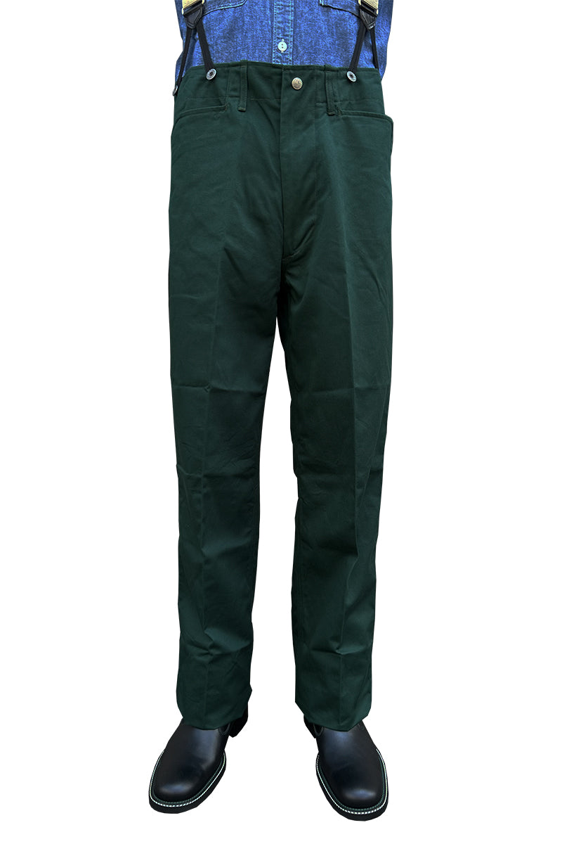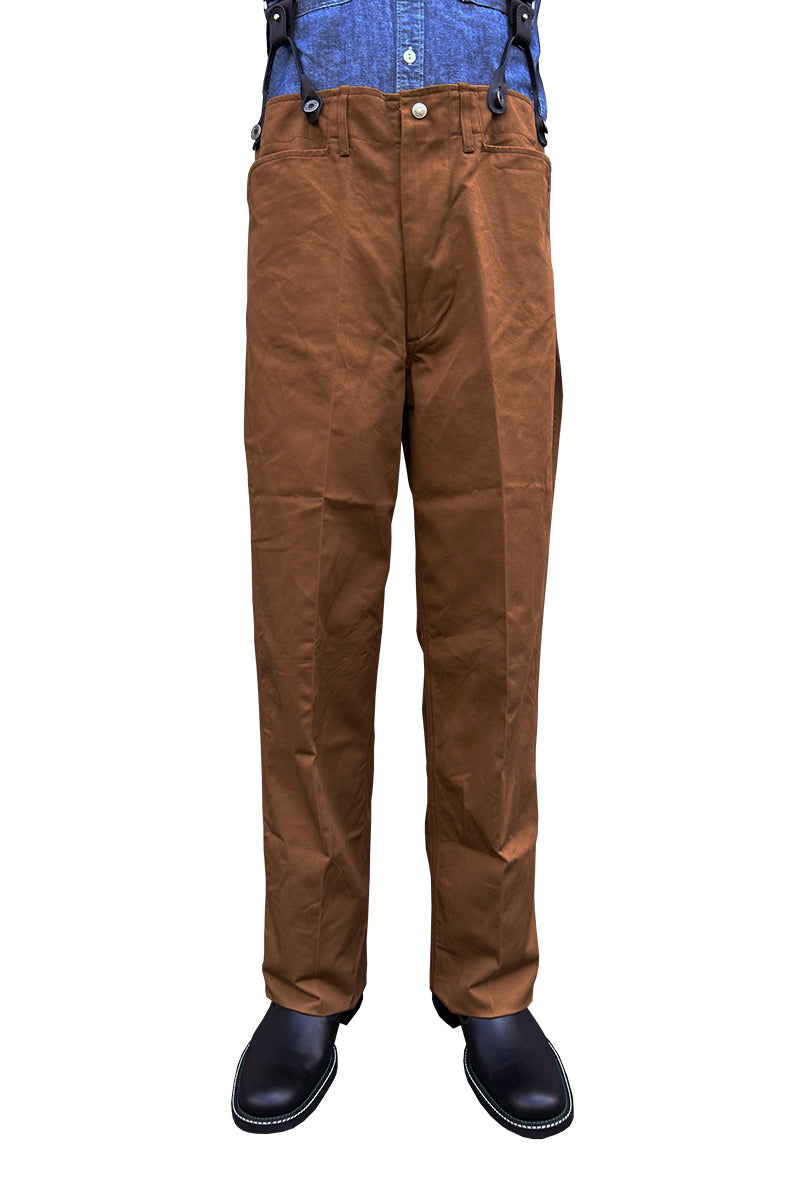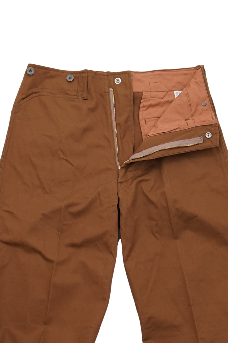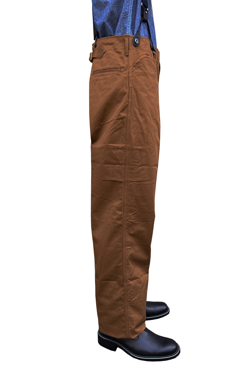 バックセンターにはバックストラップが付き、サスペンダーボタンがつきます。このバックストラップでウエストサイズを調整していた頃のディテールを再現。但し、現代のファッション事情にも合わせるべく、ベルトループもつけておきました。