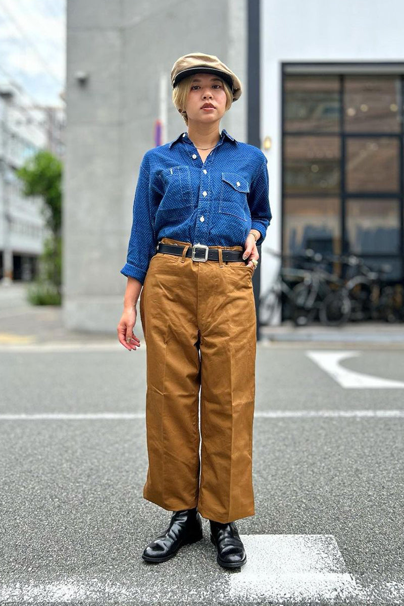 素材はコットン100%のチノクロス。ワークウエアとして代表的な素材であるチノクロスを使って、今回は色味で遊んでみました。