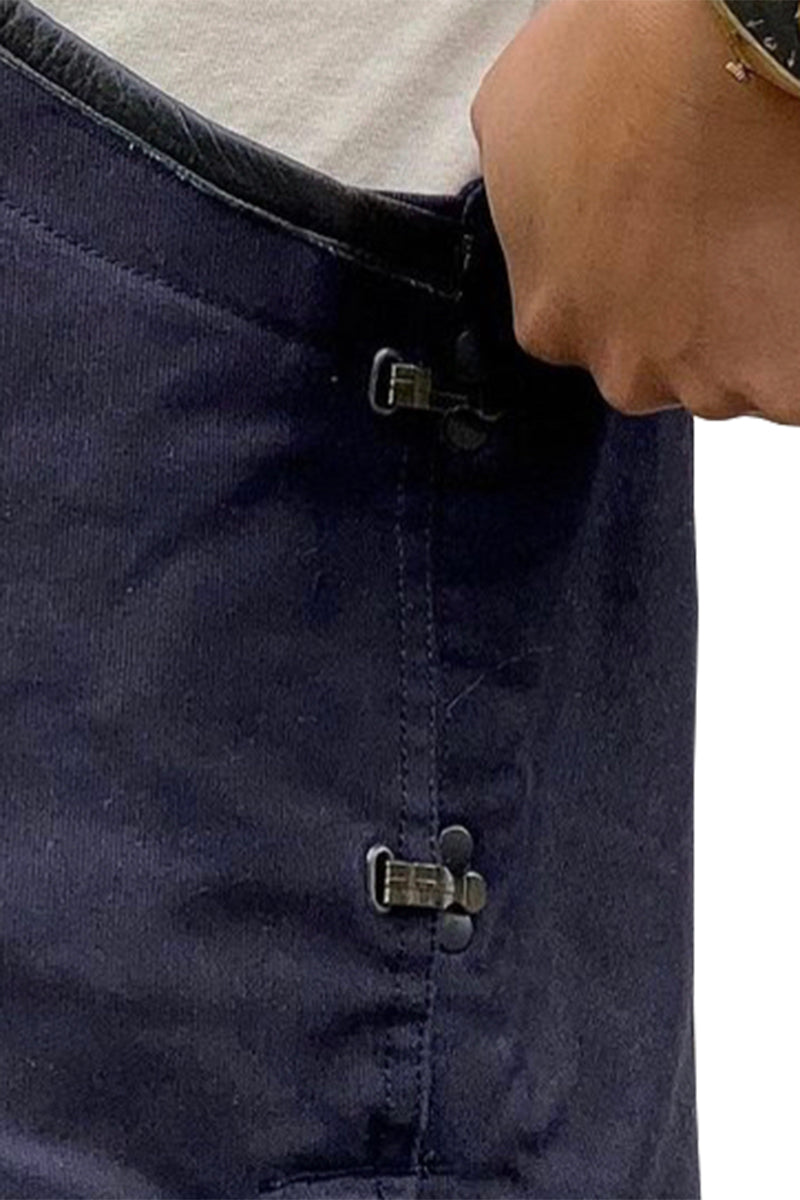 本来オーバーオールの上にアウターなど着込む事が多いのですが、トイレなどの場合、このジッパーが付いている事で脱ぎ着する必要がありません。