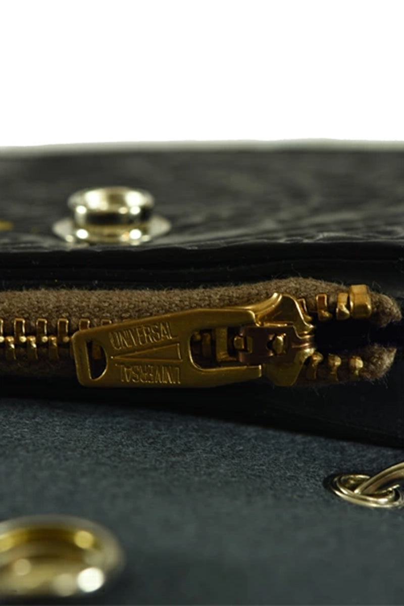 タブの裏にも同じ刻印が入り、チェーンと繋がる金物にはやはりブラス無垢のループクラッチ(日本語ではナス環と言います)を装備。