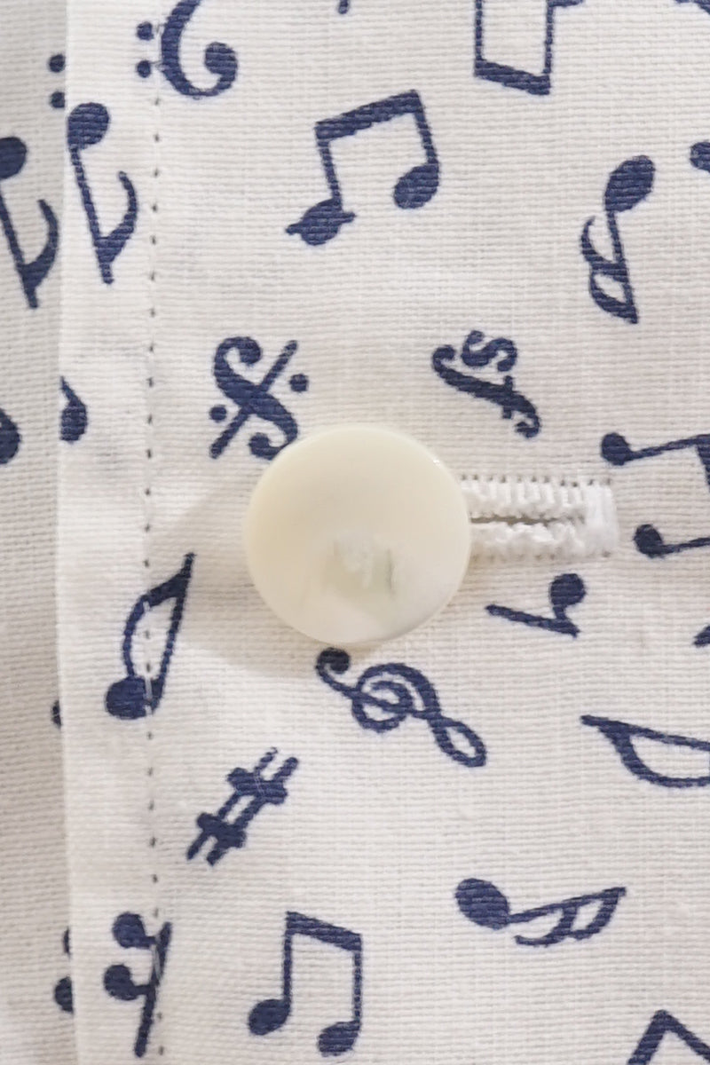 1950年代のティーンエイジャーが羽織っていたかの様な、軽やかな配色。また、音符柄ということも相俟って、ロックンロール好きには堪らない柄のシャツだと思います。