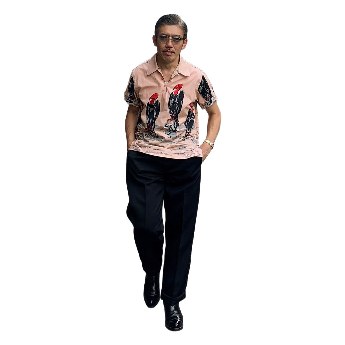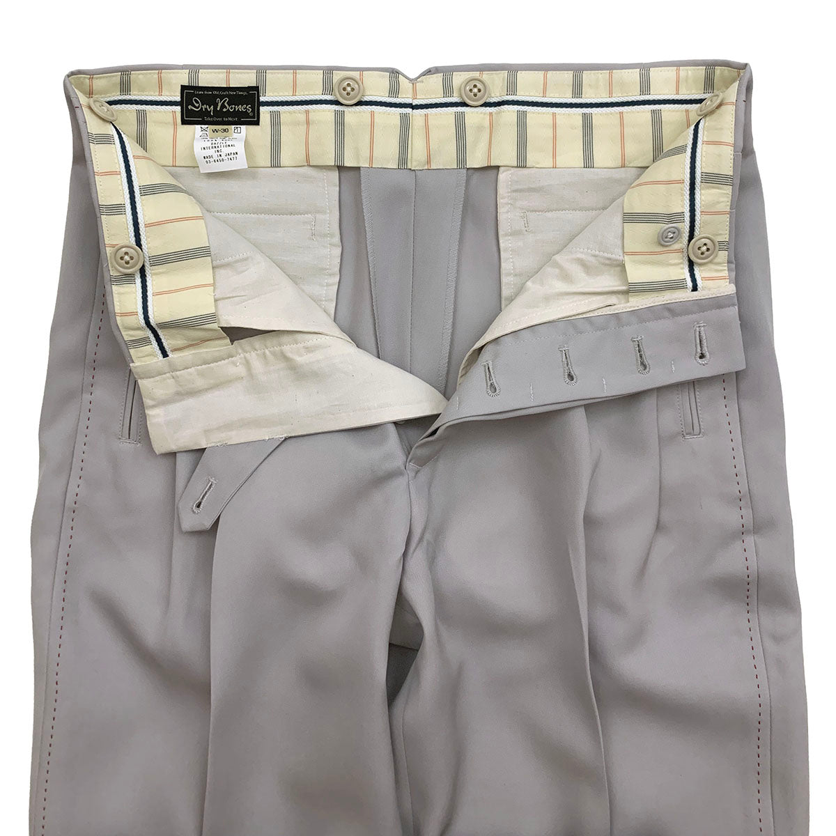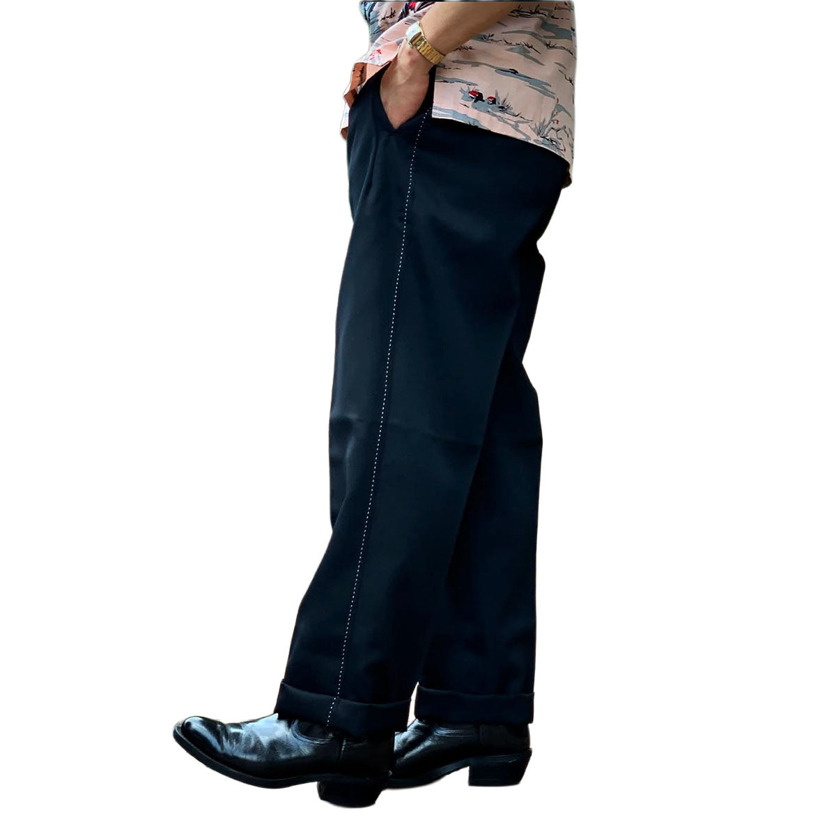 本来の名前は、ハリウッドベルト2タックトラウザーズ。ハリウッドベルトとは、1950年代当時カリフォルニア中心部で流行したトラウザーズの形状。