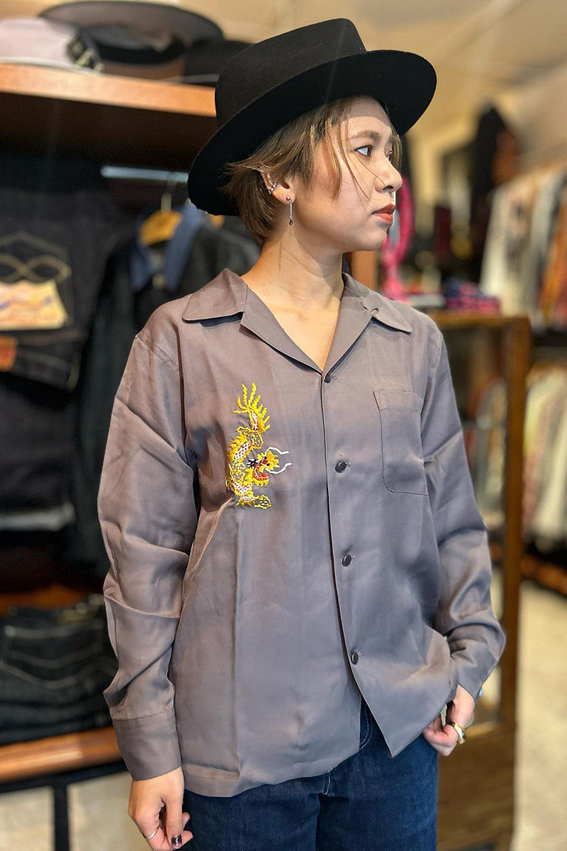 1950年代頃のオープンカラーシャツに、ヴェトナム戦争時のジャケットによく見られるドラゴン刺繍を配置してみました。