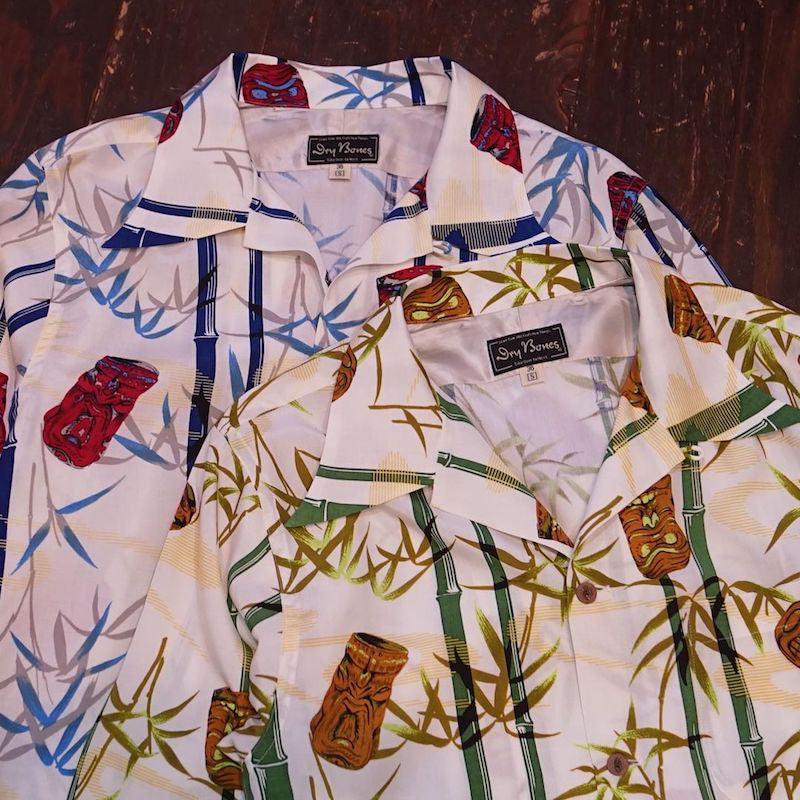 ヴィンテージはバンブー柄のみなので、その上からハワイの神様である「ティキ」を数パターンあしらいました。