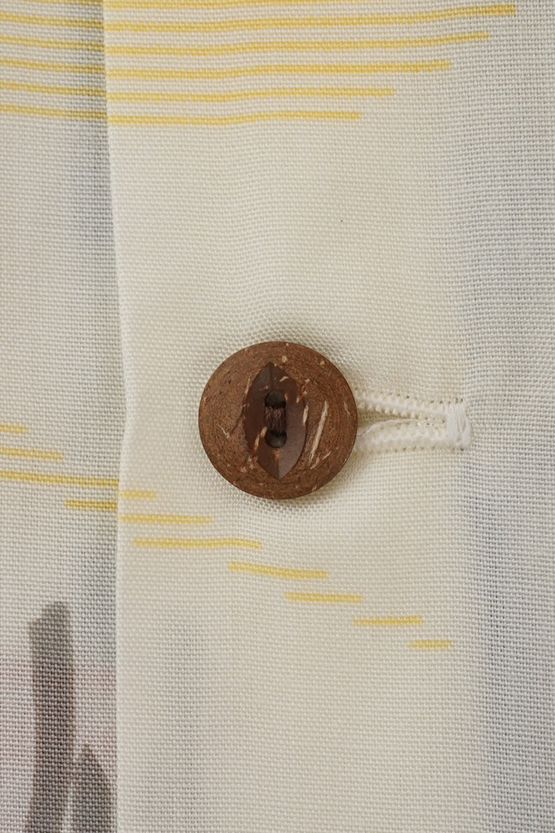 レーヨンフジエットの素材にココナッツボタン、正統派ハワイアンシャツのディテール。