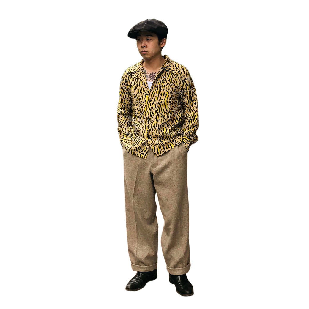 いわゆる「豹柄」ですが…この豹柄は1950年代に活躍したミュージシャンであるジーン・ヴィンセントがステージ衣装で着ていた有名な伝説の豹柄(ベージュ地)を再現しました。