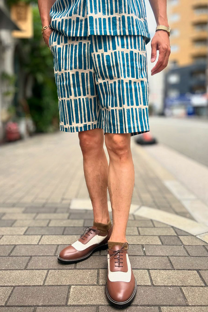 このショーツは共地でシャツも作っています。ぜひセットアップで、夏のリゾート地を楽しんでください。